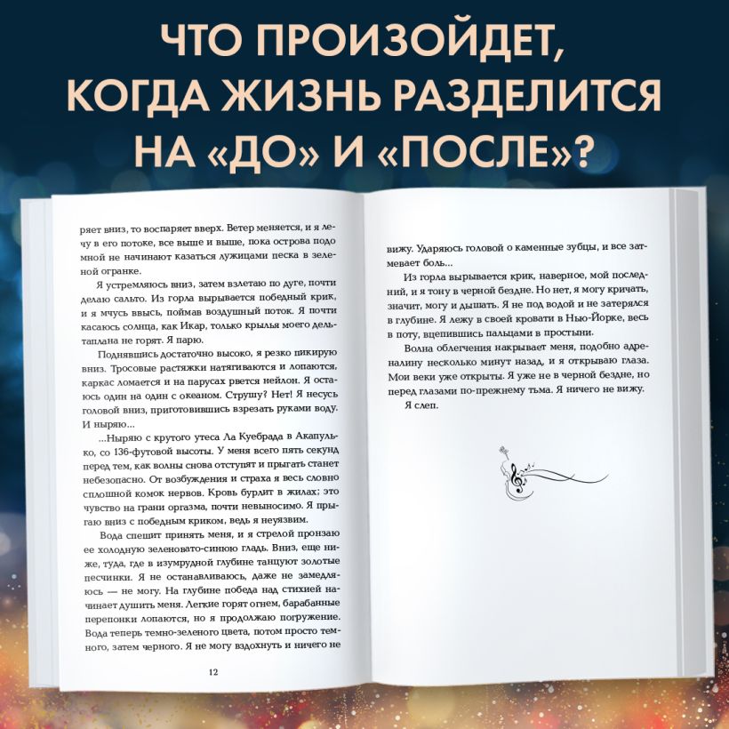 Это глубоко трогательная и эмоциональная книга о пути самопознания и принятия себя после трагического прошлого. Иначе, как драма, эту историю назвать нельзя. Когда будущее перечеркнуто из-за несчастного случая и кажется, что ничего нельзя изменить, именно в такие моменты к нам приходит любовь — чистая, искренняя, всепобеждающая. Чтобы не дать нам утонуть в бесконечной тьме. «Свет между нами» обязателен к прочтению поклонникам романов «В метре друг от друга», «Если бы крылья могли летать», «Мечта для нас».