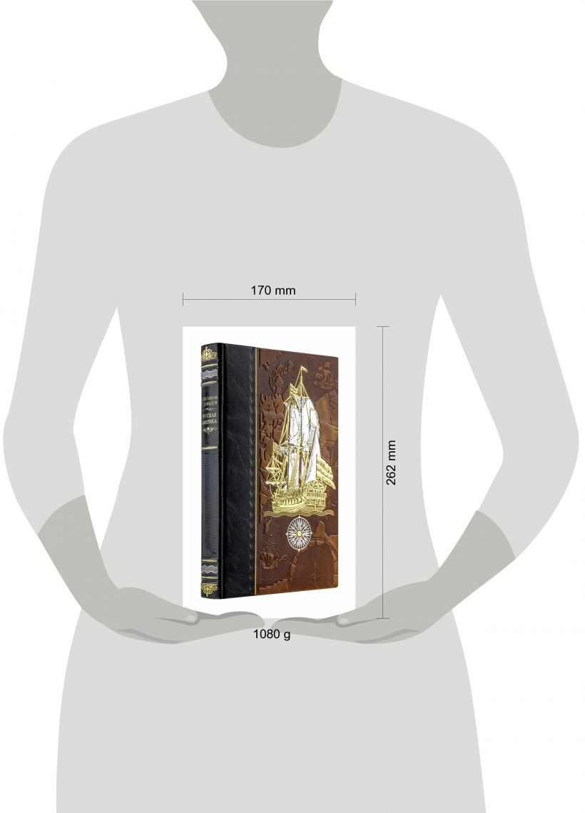 Русская Америка. Книга в коллекционном кожаном переплете ручной работы из двух видов кожи с золоченым обрезом. Парусник