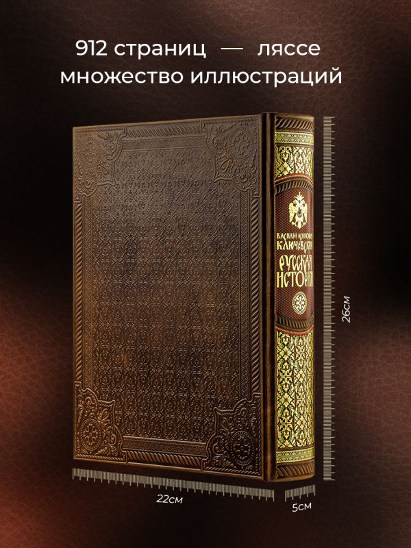 Русская история Василия Ключевского. Книга в коллекционном кожаном переплете ручной работы с многоцветным тиснением и окрашенным обрезом