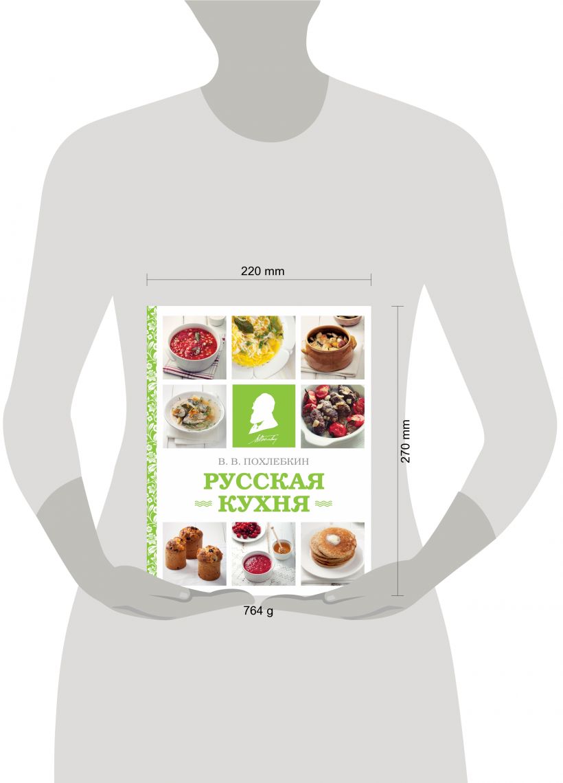 Перед вами – "Русская кухня" В.В.Похлебкина. Наглядно иллюстрированная книга специально отобранных, наиболее замечательных, оригинальных и характерных блюд русской кухни. Похлебкин пишет, что ни в какой другой национальной кухне нет такого разнообразия супов, как в русской. Семь больших групп: холодные супы (тюри, окрошки, ботвиньи), похлебки, супы-лапша с мясной, грибной и молочной гаммой, щи, рассольники и солянки, уха и калья, супы на крупяной и овощной основе. Вторые блюда: студни, жаркое, дичь, рыбные блюда. Целая поэма о приготовлении грибов. Роман о кашах: смоленская, костромская, белевская, гречневая рассыпчатая и молочная, и даже пуховая, гурьевская и еще, и еще. Венец торжества – блины и пироги (подготовка теста, выпечка, виды, начинки), а также пряники и сбитень с квасом.