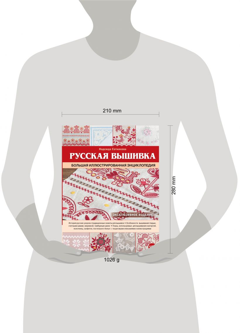 Перед вами - эксклюзивное, не имеющее аналогов в России, подарочное издание, посвященное истории и технологии русской вышивки. На страницах этой уникальной энциклопедии вы найдете информацию о значении сюжетов и мотивов, традиционно используемых в русской вышивке, о материалах, иснтрументах и приемах, которые потребуются мастерицам для вышивания, а также более 500 уникальных узоров для вышивания крестом, тамбурным швом, мережкой, гладью и другими техниками с подробными пошаговыми описаниями и цветными схемами.