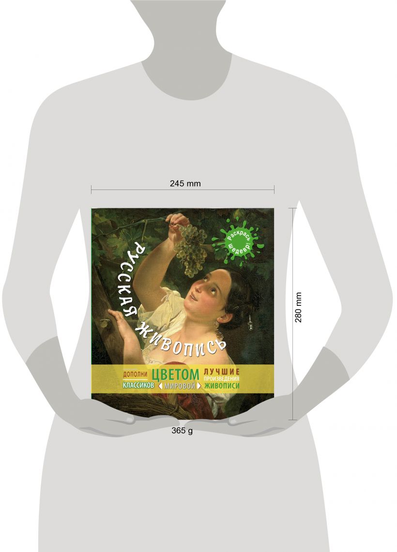 Картины, представленные в этой книге, относятся к самым разным жанрам и направлениям, выполнены в самой разной технике. Это парадные и домашние портреты, пейзажи, мифологические сюжеты, натюрморты. Все вместе они составляют галерею самых выдающихся произведений русской живописи, от середины XVIII до начала ХХ века. Вы сможете придать блеск медалям на камзоле Павла I, раскрасить яркими цветами платье "Всадницы", нанести нежный румянец на щеки "Девочки с персиками". С детства знакомые картины заиграют новыми красками.