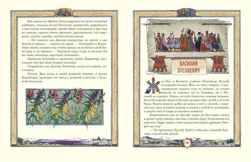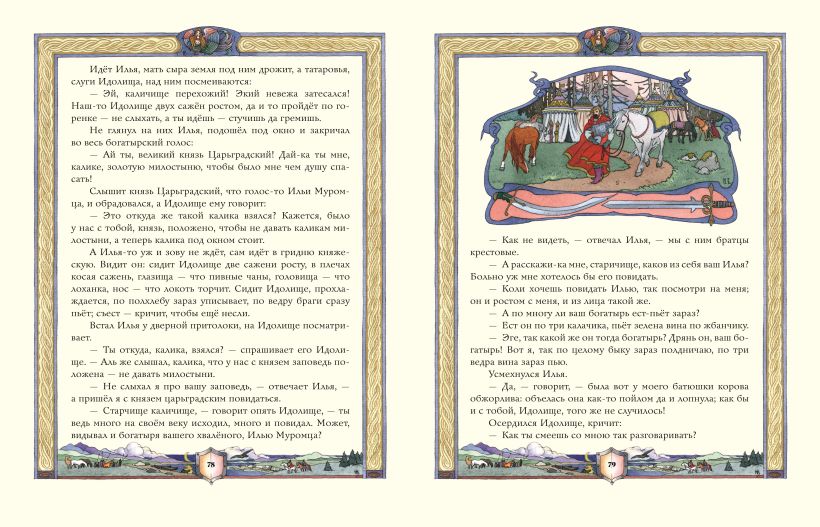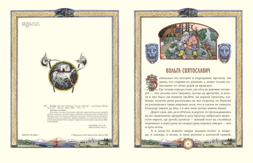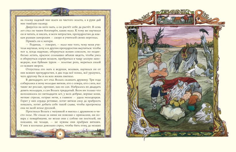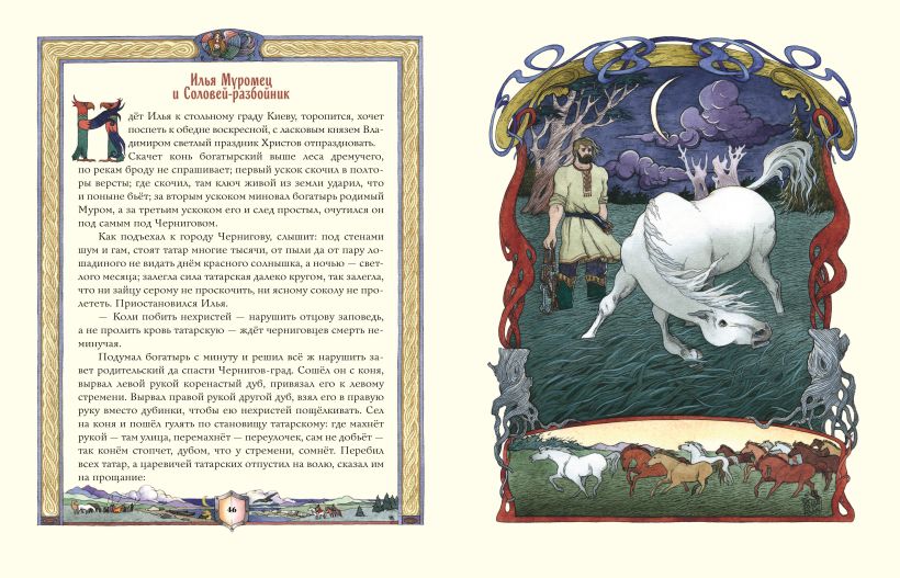 Подарочное издание большого формата. Твёрдый переплёт с тиснением фольгой. Плотная белая бумага. Чёткий, крупный шрифт. Полноцветные иллюстрации в фантазийном русском стиле.