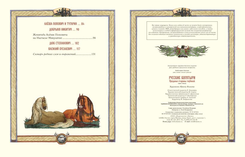 Славна была Русь богатырями — могучими воинами, защищавшими родную землю. Народная память сохранила их имена в легендах и преданиях, сказители передавали их из поколения в поколение. И столетия спустя потомки восхищаются великими подвигами былинных героев, их отвагой и верностью, их преданностью родине и семье. Не стареет честь и слава народных героев, а, значит, не оскудеет богатырями земля русская!