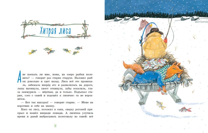 Плотная белая бумага, чёткий, хорошо читаемый шрифт и стильное оформление каждой сказки.