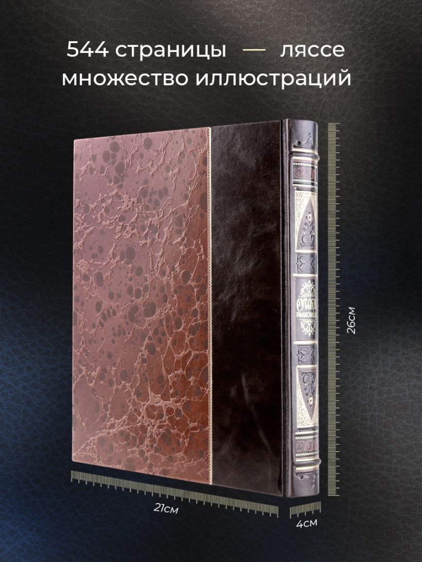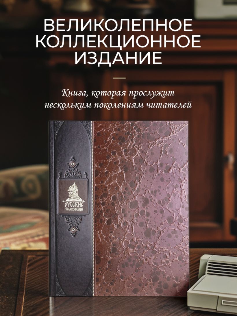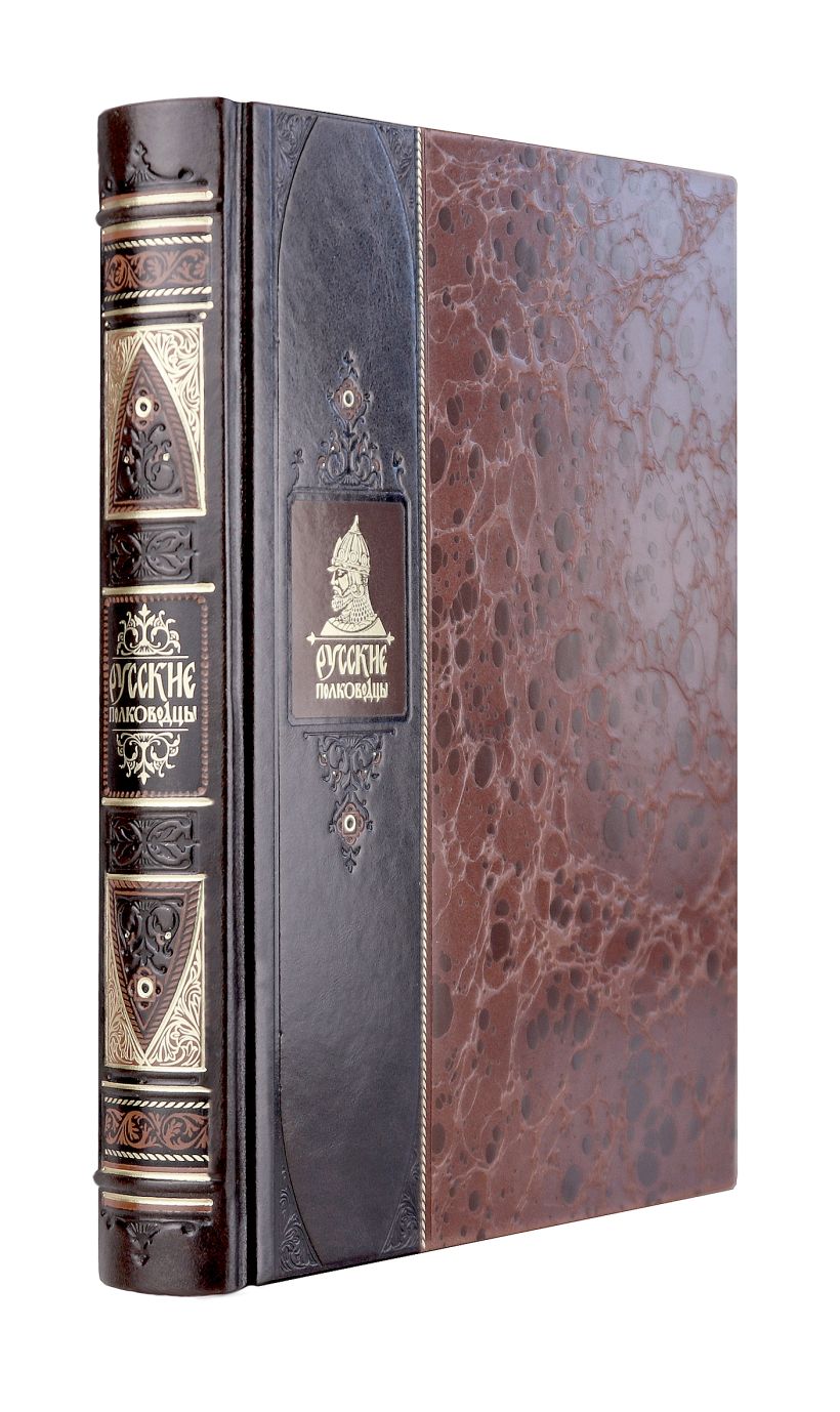Русские полководцы. Книга в коллекционном переплете из двух видов кожи с рисунком мраморной бумаги и с изящным тиснением в стиле 19 века