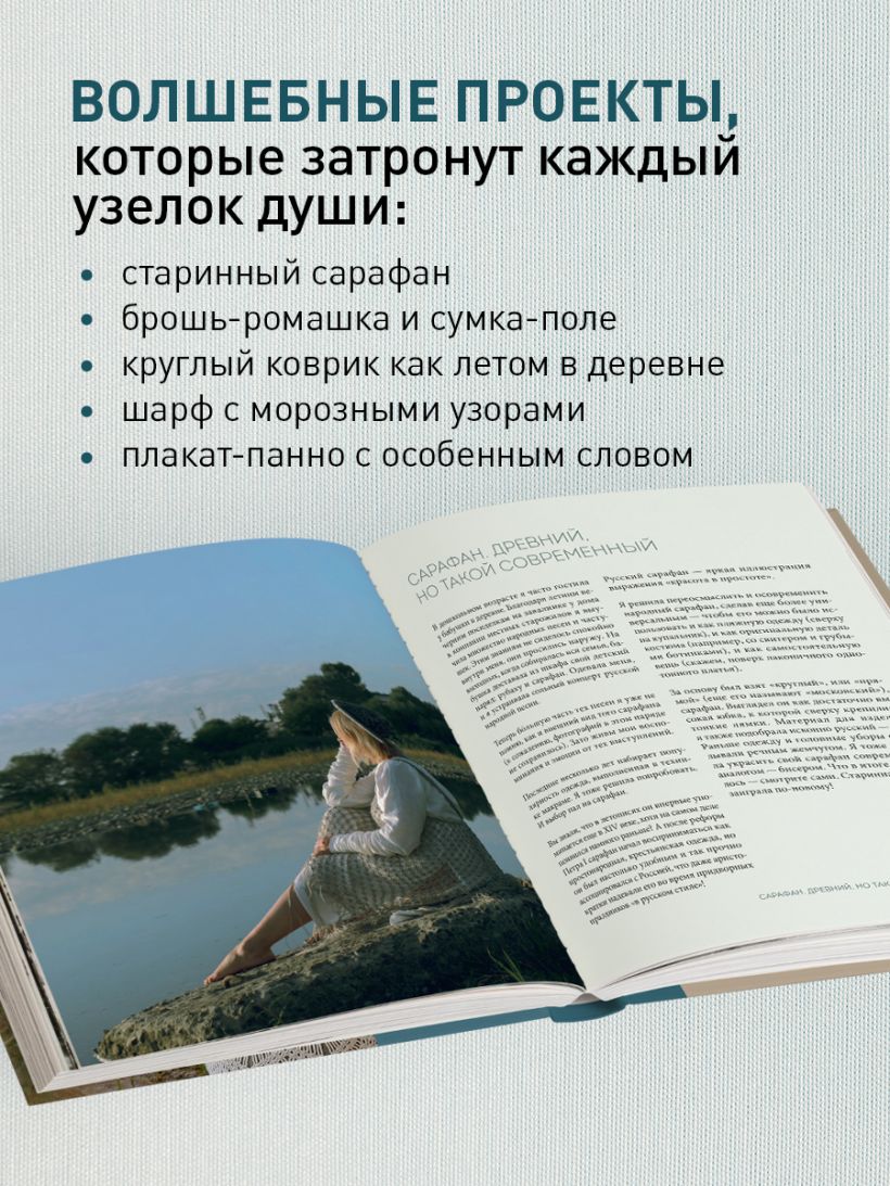 Все эти чудесные воспоминания — в каждом проекте из этой книги. Попробуйте сплести стильный льняной сарафан, мягкий кружевной шарф или круглый коврик «Лето в деревне». Да-да, тот самый, что лежал на деревянном венском стуле вашей бабули!