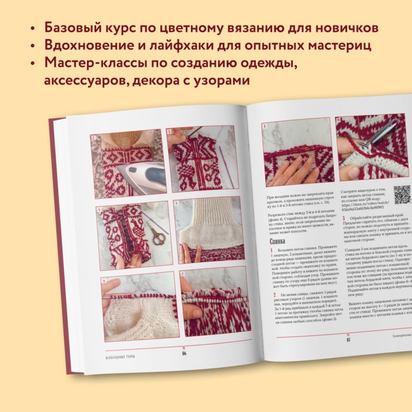 150 потрясающих аутентичных народных узоров аккуратно и красочно ложатся на вязаное полотно, делая обычный свитер уникальным, а теплый шарф или шапочку — яркими и притягательными.