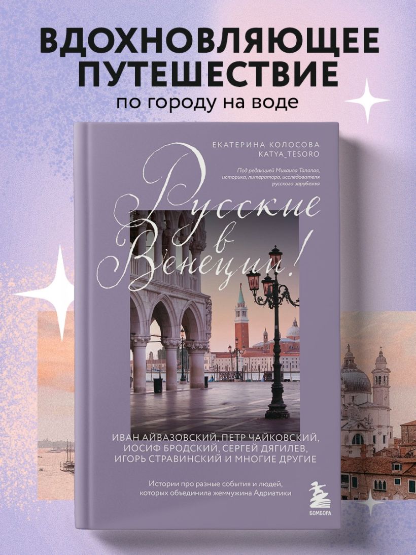 Чехов, Стравинский, Врубель, Чайковский, Бродский — все эти и многие другие имена оживут на страницах книги. Вы узнаете невероятные факты, о которых раньше могли не слышать. А еще побываете во многих знаковых местах — площадь Святого Марка, театр «Ла Фениче», кладбище Сан-Микеле, дворец Ка д'Оро, остров Лидо...