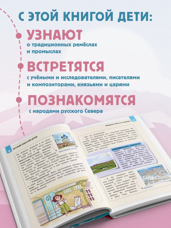На страницах путеводителя можно найти красочные портреты, достопримечательности и предметы народных промыслов. А яркие фотографии отлично дополняют повествование. В книге можно найти множество увлекательных заданий и головоломок. Решение кроссвордов, задачек, загадок и ребусов помогает маленьким читателям увлечься процессом и запомнить намного больше информации. Отправляйтесь в самое интересное путешествие на Русский Север вместе с «Детским путеводителем»!