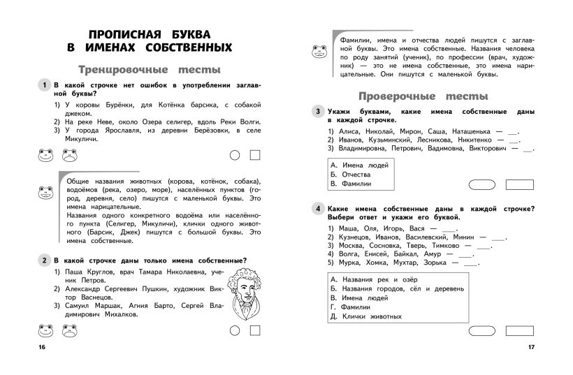 Пособие по русскому языку от издательства «Эксмо» подготовлено в соответствии с требованиями ФГОС для начальной школы и может быть использовано с любым из действующих учебников для 3 класса. Удобный тренажер с интересным современным макетом поможет ребенку улучшить грамотность, восполнить пробелы, углубить и систематизировать знания. Занимаясь, школьник не только повторит правописание безударной гласной в корне, приставок и предлогов, безударной гласной в падежных окончаниях, потренируется различать простые и сложные предложения, но и научится работать по плану, то есть выполнять определенный алгоритм действий, который поможет ему осознанно применять правила. Когда навык грамотного письма будет доведен до автоматизма, результат в виде твердых знаний и отличных оценок не заставит себя ждать.