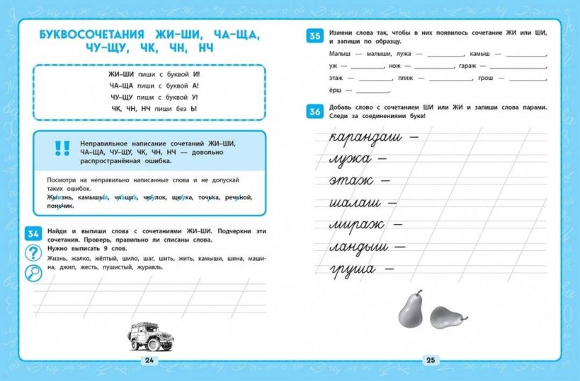 Пособие по русскому языку от издательства «Эксмо» подготовлено в соответствии с требованиями ФГОС для начальной школы и может быть использовано с любым из действующих учебников для 1 класса. Удобный тренажер с интересным современным макетом поможет ребёнку улучшить грамотность, восполнить пробелы, углубить и систематизировать знания. Занимаясь, школьник не только отработает основные темы школьной программы: правописание ЖИ-ШИ, ЧА-ЩА, ЧУ-ЩУ, ЧК, ЧН, НЧ, НЩ, парных согласных в конце слова, имен собственных, предлогов и др., но и научится работать по плану, то есть выполнять определенный алгоритм действий, который поможет ему осознанно применять правила. Когда навык грамотного письма будет доведен до автоматизма, результат в виде твердых знаний и отличных оценок не заставит себя ждать.