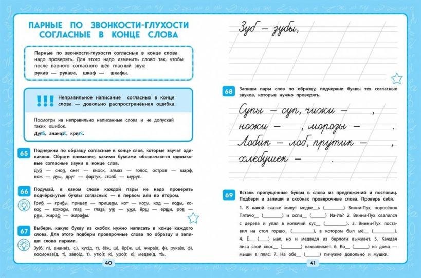 Пособие по русскому языку от издательства «Эксмо» подготовлено в соответствии с требованиями ФГОС для начальной школы и может быть использовано с любым из действующих учебников для 3 класса. Удобный тренажер с интересным современным макетом поможет ребенку улучшить грамотность, восполнить пробелы, углубить и систематизировать знания. Занимаясь, школьник не только повторит правописание безударной гласной в корне, приставок и предлогов, безударной гласной в падежных окончаниях, потренируется различать простые и сложные предложения, но и научится работать по плану, то есть выполнять определенный алгоритм действий, который поможет ему осознанно применять правила. Когда навык грамотного письма будет доведен до автоматизма, результат в виде твердых знаний и отличных оценок не заставит себя ждать.