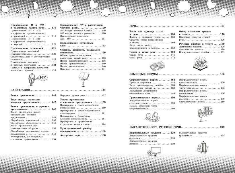 Если вы путаетесь в правилах, понятиях и не можете уложить в голове весь объемный материал за школьный курс, то это пособие идеально вам подойдет. В книге нет длинных и скучных текстов — весь материал разбит по коротким рубрикам, таблицам и схемам, которые дополняют иллюстрации. Важная информация подается через вопросно-ответную форму с элементами комиксов. Такая форма изложения теории сделает обучение не только эффективным, но и интересным.