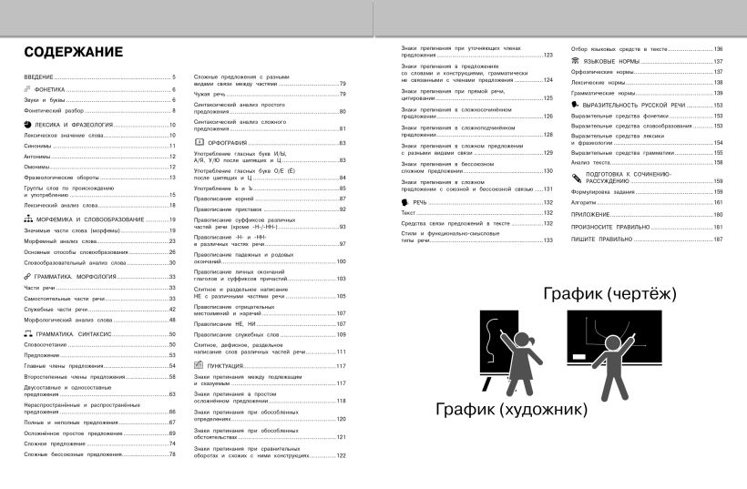 В громоздких учебниках порой бывает сложно найти ответ на какой-то конкретный вопрос. А в данном издании представлена действительно нужная и систематизированная информация, материал изложен последовательно, от простого к сложному, дополняется иллюстрациями, примерами, наглядными схемами и таблицами. В этой книжке для школьников можно найти все основные разделы предмета: «Фонетика», «Орфография», «Пунктуация», «Лексика», «Грамматика», «Культура речи». В конце пособия расположены орфографический и орфоэпический словарики, а также раздел для подготовки к написанию сочинений.
