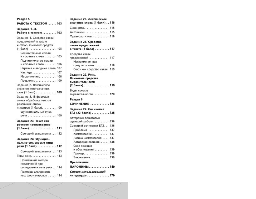 Эта книга разложит по полочкам все темы по предмету за 5, 6, 7, 8, 9, 10, 11 классы: вы сможете запросто повторить уже изученный материал, а также проработать не охваченные ранее вопросы. Информация по разделам «Орфография», «Пунктуация», «Грамматика», «Орфоэпия и лексика», «Работа с текстом» и «Сочинение» преподносится наглядно и понятно, а также сопровождается примерами и комментариями. Вместе с теорией приводятся разные типы экзаменационных заданий с ответами и подробными пояснениями. Так ни одна важная мысль не ускользнёт от вас во время занятий с учебником! Также в конце книжки вы найдёте полезное приложение по паронимам!