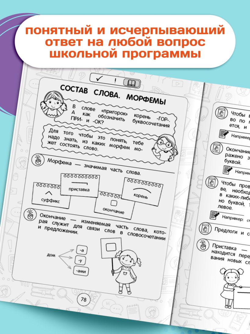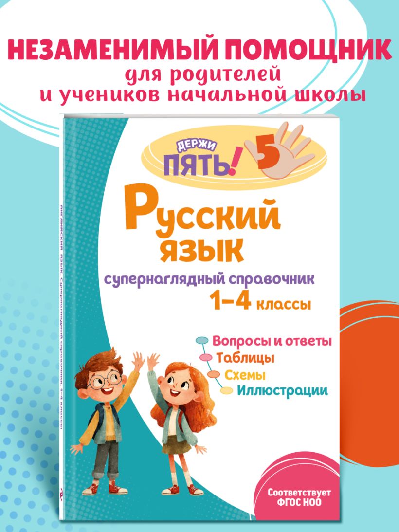 Справочник разработан в полном соответствии с требованиями ФГОС начального общего образования. Это прекрасный подарок детям на 1 сентября, который поможет им успешно справляться с домашними заданиями и освоить программу русского языка. Книга полезна не только ученикам начальной школы, но и их родителям, желающим помочь с выполнением домашних заданий, а также педагогам, стремящимся сделать уроки русского языка более наглядными и интересными. Этот универсальный справочник — отличный помощник для подготовки к ВПР, контрольным и самостоятельным работам!