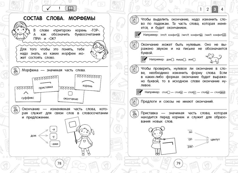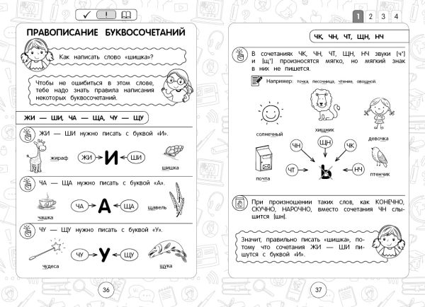 Правила русского языка объясняются в лёгкой и доступной форме, что позволяет ученикам начальной школы лучше усваивать информацию. На каждый конкретный вопрос даётся понятный и исчерпывающий ответ. В конце сборника помещён список словарных слов за курс начальной школы, который станет удобной шпаргалкой для подготовки к урокам.