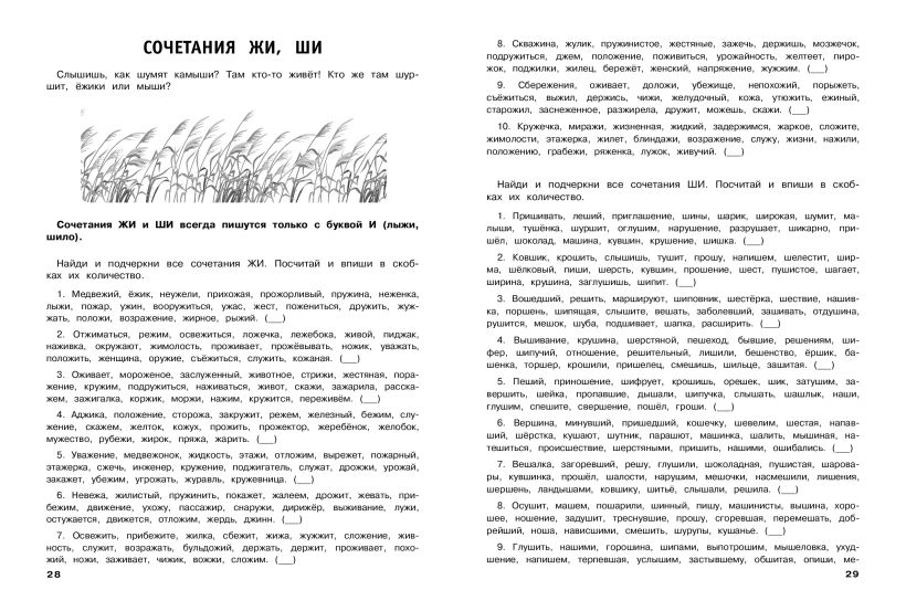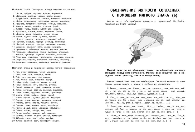 Пособие по русскому языку от издательства «Эксмо» подготовлено в соответствии с требованиями ФГОС для начальной школы и может быть использовано с любым из действующих учебников для 1 класса. Удобный тренажер с интересным современным макетом поможет ребёнку улучшить грамотность, восполнить пробелы, углубить и систематизировать знания. Занимаясь, школьник не только отработает основные темы школьной программы: правописание ЖИ-ШИ, ЧА-ЩА, ЧУ-ЩУ, ЧК, ЧН, НЧ, НЩ, парных согласных в конце слова, имен собственных, предлогов и др., но и научится работать по плану, то есть выполнять определенный алгоритм действий, который поможет ему осознанно применять правила. Когда навык грамотного письма будет доведен до автоматизма, результат в виде твердых знаний и отличных оценок не заставит себя ждать.