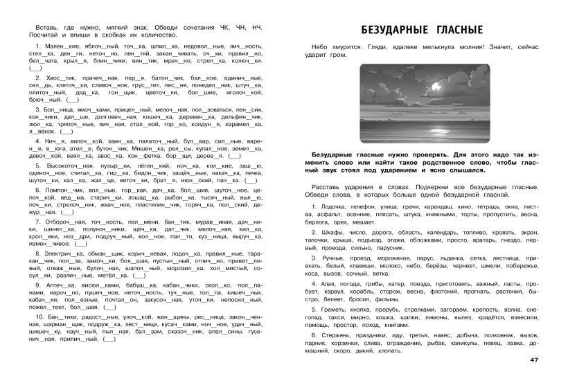 Пособие по русскому языку от издательства «Эксмо» подготовлено в соответствии с требованиями ФГОС для начальной школы и может быть использовано с любым из действующих учебников для 3 класса. Удобный тренажер с интересным современным макетом поможет ребенку улучшить грамотность, восполнить пробелы, углубить и систематизировать знания. Занимаясь, школьник не только повторит правописание безударной гласной в корне, приставок и предлогов, безударной гласной в падежных окончаниях, потренируется различать простые и сложные предложения, но и научится работать по плану, то есть выполнять определенный алгоритм действий, который поможет ему осознанно применять правила. Когда навык грамотного письма будет доведен до автоматизма, результат в виде твердых знаний и отличных оценок не заставит себя ждать.