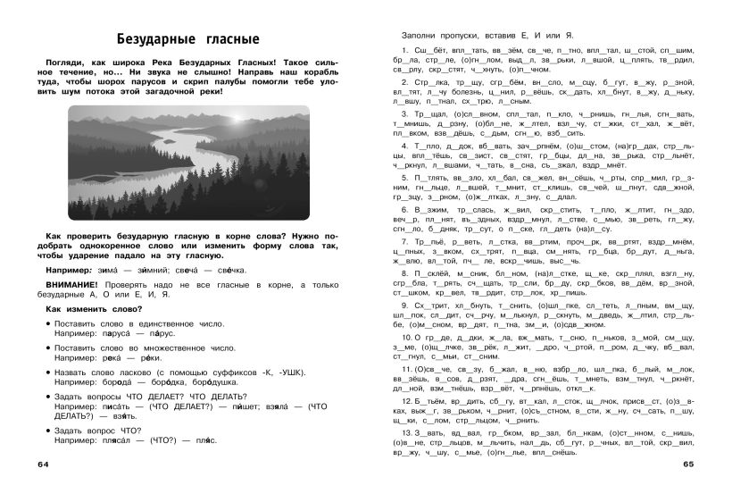 Пособие по русскому языку от издательства «Эксмо» подготовлено в соответствии с требованиями ФГОС для начальной школы и может быть использовано с любым из действующих учебников для 3 класса. Удобный тренажер с интересным современным макетом поможет ребенку улучшить грамотность, восполнить пробелы, углубить и систематизировать знания. Занимаясь, школьник не только повторит правописание безударной гласной в корне, приставок и предлогов, безударной гласной в падежных окончаниях, потренируется различать простые и сложные предложения, но и научится работать по плану, то есть выполнять определенный алгоритм действий, который поможет ему осознанно применять правила. Когда навык грамотного письма будет доведен до автоматизма, результат в виде твердых знаний и отличных оценок не заставит себя ждать.