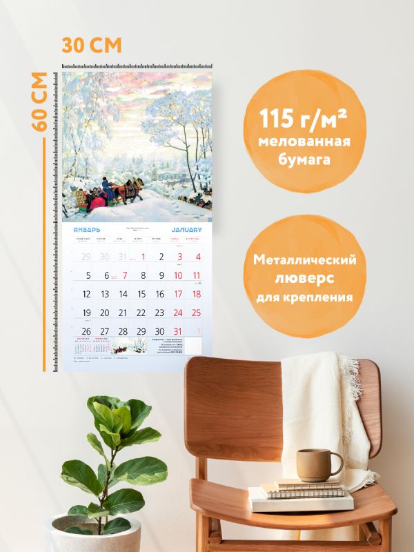 Наши настенные календари отличаются высоким качеством исполнения! Тщательно подобранные иллюстрации, напечатанные на глянцевой бумаге высочайшего качества, станут настоящим украшением дома, а в календарной сетке найдется место для ваших планов: большие клетки позволят делать записи и организовать свой год! В календаре также отмечены все государственные праздники.