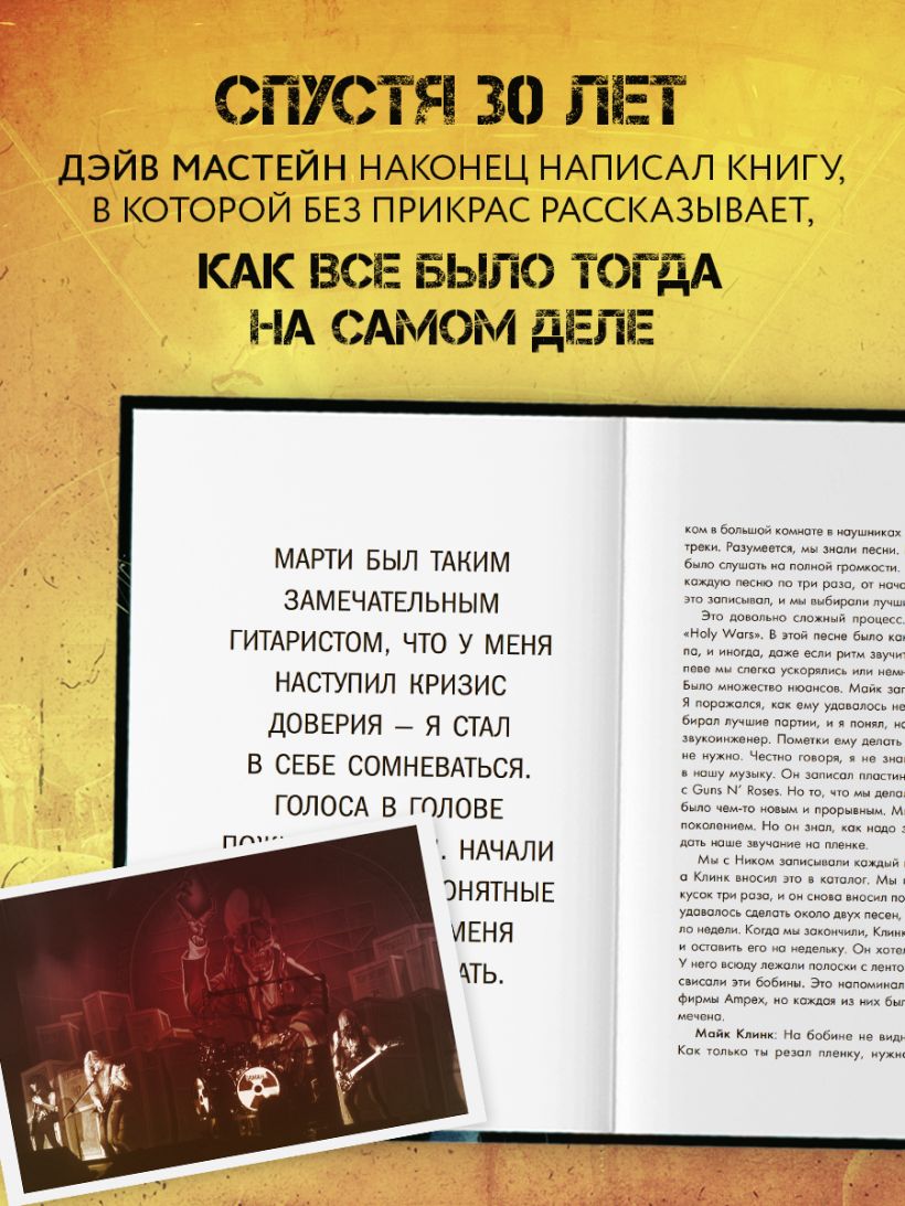 Книга состоит не только из воспоминаний самого Мастейна, но и его бесед с другими участниками группы. Предисловие же написал друг автора и легендарный гитарист Guns N’ Roses Слэш.