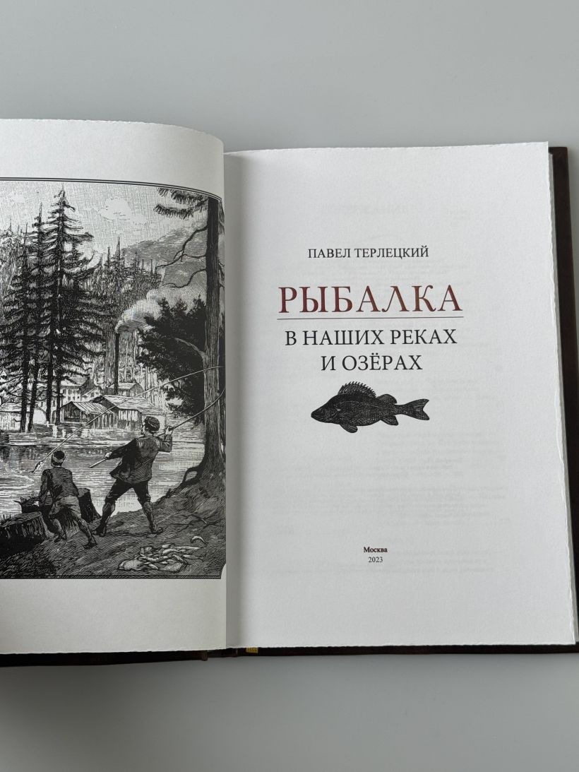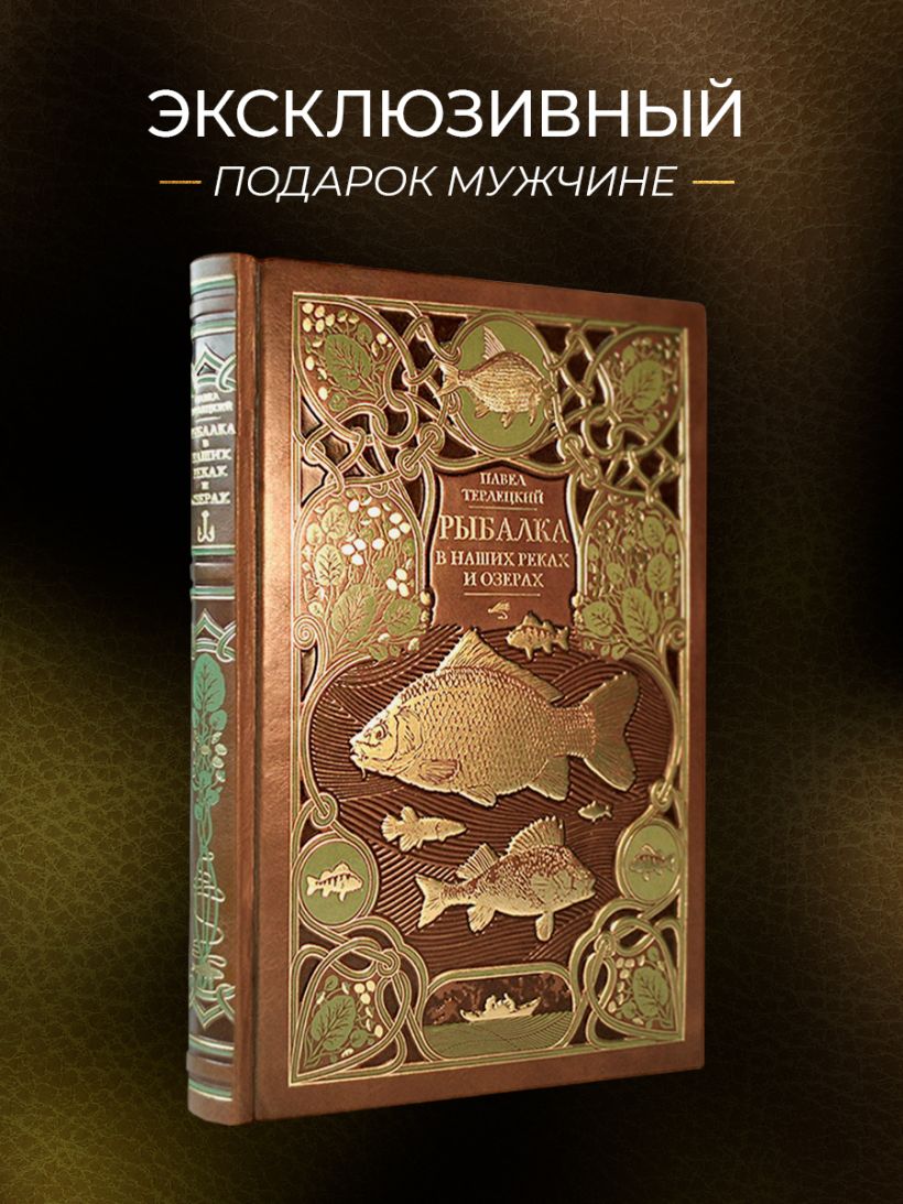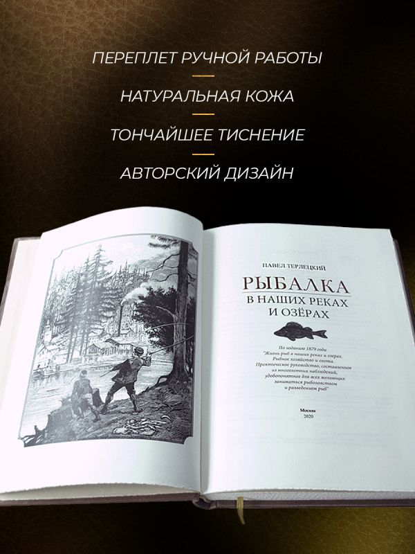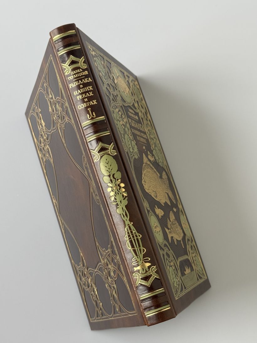 Рыбалка в наших реках и озёрах. Иллюстрированное коллекционное издание в изящном переплёте ручной работы, украшенном тремя видами тиснения