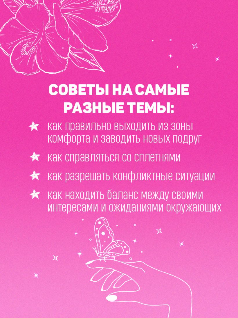 Эта книга выведет тебя из чащи тревог и переживаний, поможет справиться с проблемами в общении, обрести уверенность в себе и своих силах, найти надёжных подруг и стать по-настоящему счастливой! Она включает в себя увлекательные тесты для самопознания и практические советы для девочек от Люси Хеммен — известного психолога, успешно работающего именно с подростками. Эти рекомендации основаны на реальных историях девушек и охватывают самые разные темы: как правильно выходить из зоны комфорта и заводить новых подруг, как справляться со сплетнями и разрешать конфликтные ситуации, как находить баланс между личными интересами и интересами окружающих, и в итоге — как стать успешной в общении!