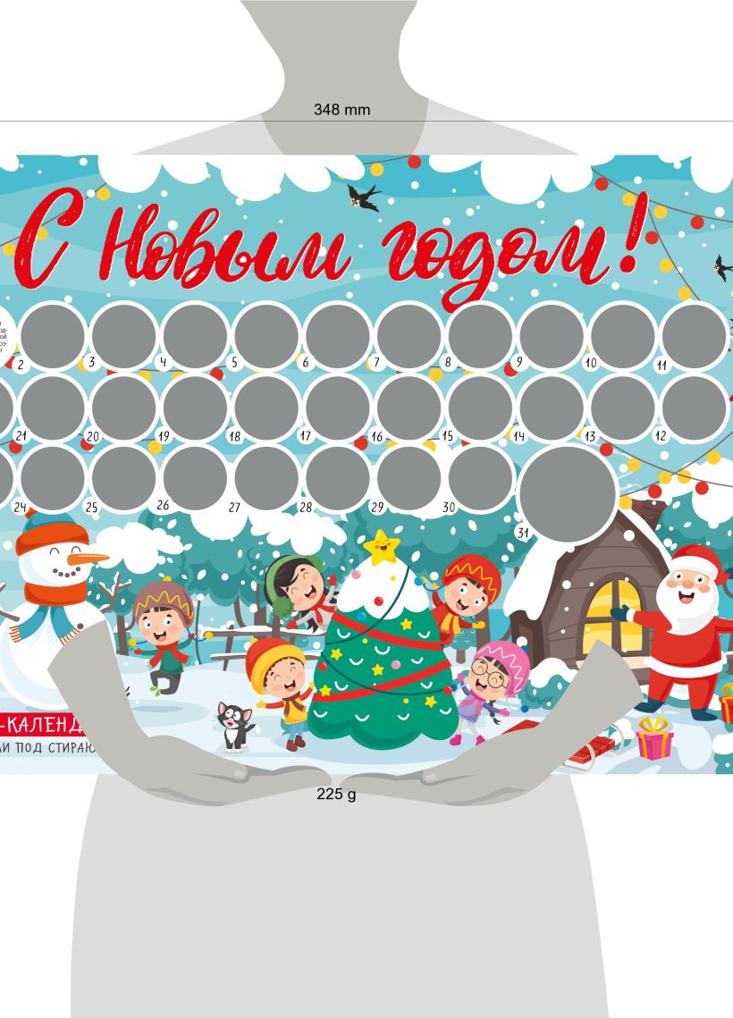 Последний месяц перед Новым годом всегда самый сложный, ведь ждать с каждым днем становится все труднее! Этот календарь создан для того, чтобы окунуться в атмосферу праздника уже сейчас и в полной мере подготовиться к его приближению. Начиная с 1 декабря, стирайте по одному серебристому кружочку в день. Там вас ждут сюрпризы — увлекательные задания и советы, как провести день. Выполняйте их и заряжайтесь праздничным настроением! А когда сотрете последний кружок — наступит Новый год!