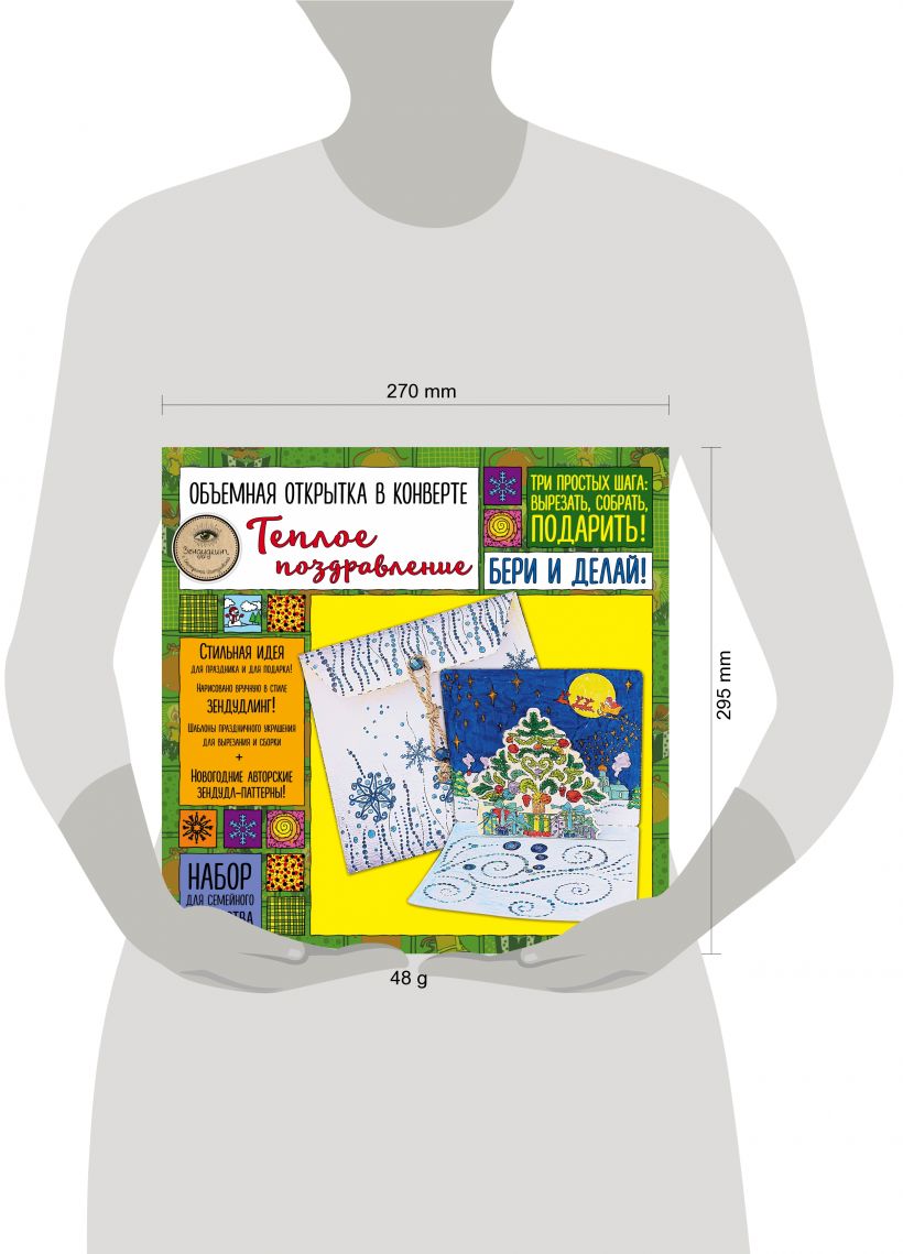 Готовимся к Новому году! В наборе три плотных листа-заготовки с готовыми цветными шаблонами объемной новогодней открытки и ажурного коныерта к ней, разрисованных изящными паттернами в стиле зендудлинг! Три простых шага: вырезать, раскрасить и собрать с помощью клея. Если не любите раскрашивать, воспользуйтесь обратной стороной листа, на которой вы найдете яркий и красивый праздничный паттерн. Хотите много открыток? Сделайте столько копий шаблона, сколько нужно! Замечательное творческое занятие для детей и взрослых, любящих предновогоднюю суету и предпраздничную атмосферу. Пусть ваш Новый год будет стильным и ярким!