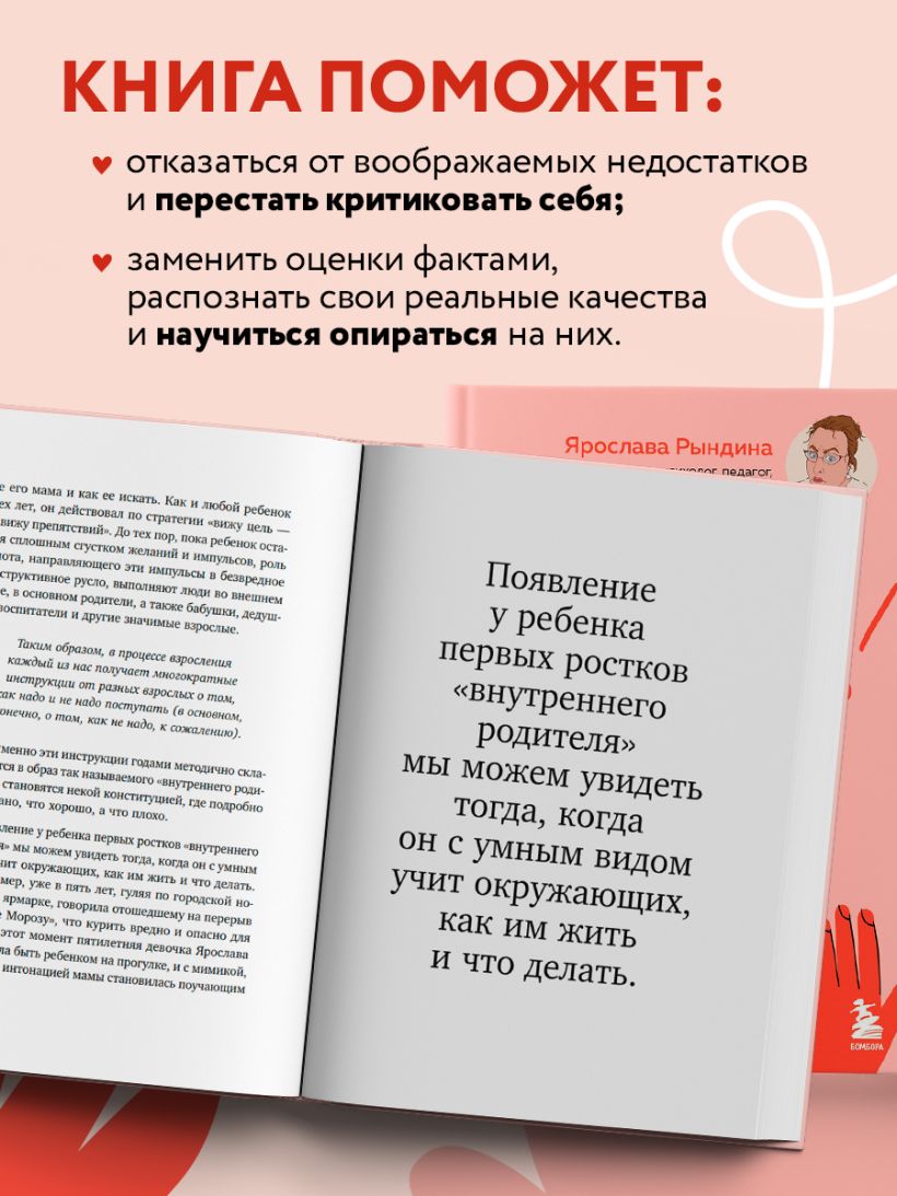 Эта книга, написанная психологом и основателем центра «Ярко» Ярославой Рындиной, рассказывает, что отделяет вас от желанной адекватной самооценки. Выполнив несколько упражнений и пройдя 5 простых шагов, вы больше не захотите качаться на эмоциональных качелях «Я прекрасен-Я круглый ноль» и отделитесь от чувств «правильно-неправильно».