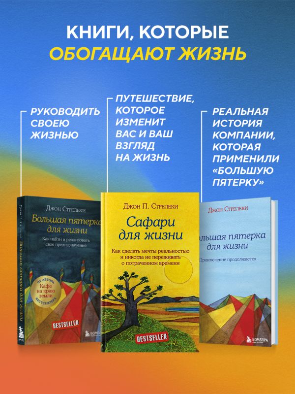 В РОССИИ ПРОДАНО БОЛЕЕ 500 000 ЭКЗЕМПЛЯРОВ КАФЕ НА КРАЮ ЗЕМЛИ! ОБЩИЙ ТИРАЖ КНИГ ДЖОНА СТРЕЛЕКИ В РОССИИ ПРЕВЫСИЛ 1,2 МИЛЛИОНА ЭКЗЕМПЛЯРОВ! После долгого блуждания в темноте и неизвестности всё, что вам нужно — зайти в уютное кафе, выбрать столик и раскрыть меню. Вместе с главным героем Джоном вы пройдете короткий, но полный удивительных открытий путь — путь к самому себе. Каждому из нас необходимо хоть раз остановиться посреди суеты и тревог современного мира и ответить на главный вопрос: «Почему я здесь?» Понять, что действительно значимо, увидеть цель своей жизни в дымке будущего и двигаться к ней, каждый день ощущая себя счастливым. Эта книга — мировой бестселлер, переведенный на 30 языков, — вдохновит вас на перемены, о которых сегодня вы можете только мечтать. Об авторе Джон П. Стрелеки — талантливый писатель, спикер и коуч. В 2002 году, будучи еще бизнес-консультантом, Джон с женой отправился в девятимесячное путешествие по миру. Этот опыт вдохновил его на написание первого бестселлера — «Кафе на краю земли». После его ошеломительного успеха было издано еще несколько книг автора, многие из которых стали бестселлерами.