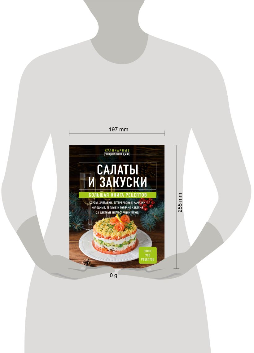 Наступает время праздников, и в голове у хозяйки возникает вопрос: какие салаты, какие закуски предложить гостям? Конечно, оливье, но нужно что-то новенькое, какое-то новое сочетание, никому неизвестный и неожиданный вкус. Мы бросаемся в интернет, но в нем всего так много, а как найти удачное, и верны ли там пропорции ингредиентов. Времени на поиск уходит массу, а толку… В то время как обычный способ — открыть книгу, посмотреть содержание и выбрать сразу несколько вариантов на пробу — оказывается самым эффективным и быстрым. В нашей книге более 900 рецептов салатов и закусок! Они собраны, отредактированы, упорядочены, со своей навигацией и рекомендациями. В разделе салатов вы найдете салаты с овощами и бобовыми, с рыбой и морепродуктами, с разного рода мясом и птицей, фруктами и ягодами. В разделе закусок вам будут предложены разнообразные боулы, бутерброды, канапе, тарталетки, жульены, рулеты, паштеты, всевозможные фаршированные изделия. А также для салатов и закусок необходимы соусы, заправки, бутербродные намазки, сальсы, кремы, начинки. Все это представлено в одном месте! Удобно, разнообразно, доступно!