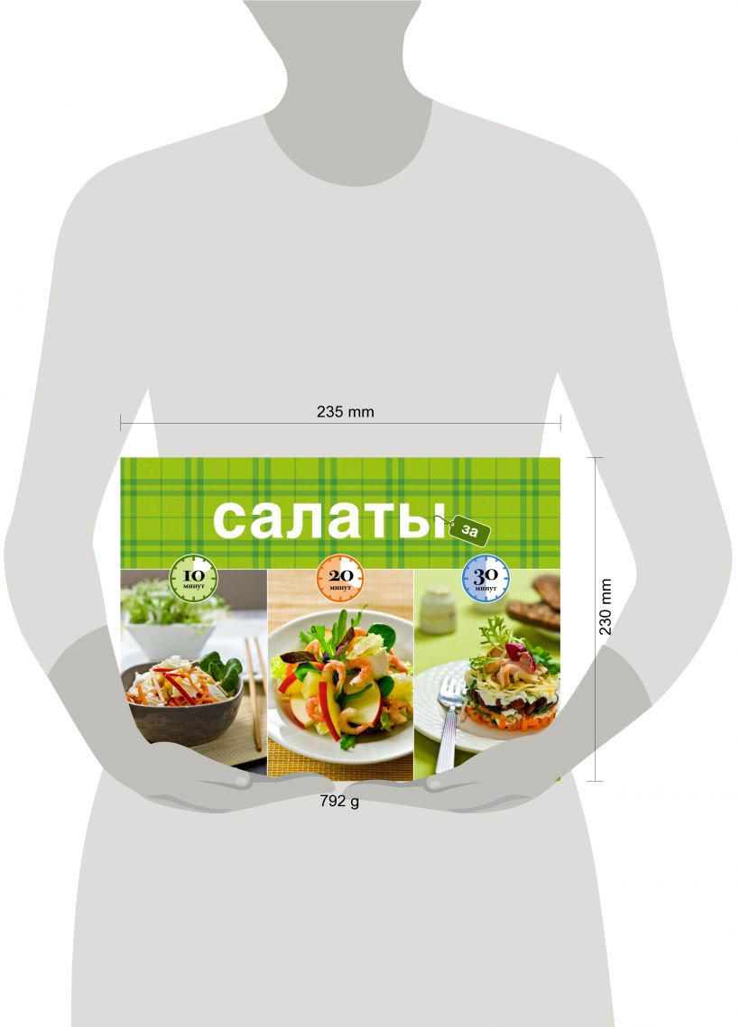 Самая удобная книга о салатах на вашей кухне! Особая конструкция книги позволяет поставить книгу на стол, чтобы было удобней готовить. Рецепты разбиты на 3 блока по времени приготовления – 10, 20 или 30 минут. Вы можете выбрать салат в зависимости от того сколько времени вы можете потратить на готовку. Все рецепты салатов просты и понятны и их можно приготовить из доступных продуктов. Теперь удивлять своих близких аппетитными салатами каждый день проще простого!