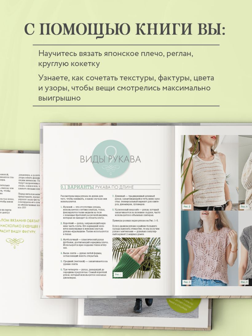 Только трендовые конструкции плечевых изделий: японское плечо, круглая кокетка, реглан во всех возможных вариантах! Способы отделки, принципы расчетов на любой размер, секреты выбора того или иного фасона, исходя из особенностей фигуры! Книга написана настолько интересно и просто, инструкции настолько понятны и прекрасно иллюстрированы, что справиться с вязанием сможет даже впервые взявший в руки спицы! Простой и стильный вариант вязания сверху вниз модных, красивых, прекрасно сидящих изделий!
