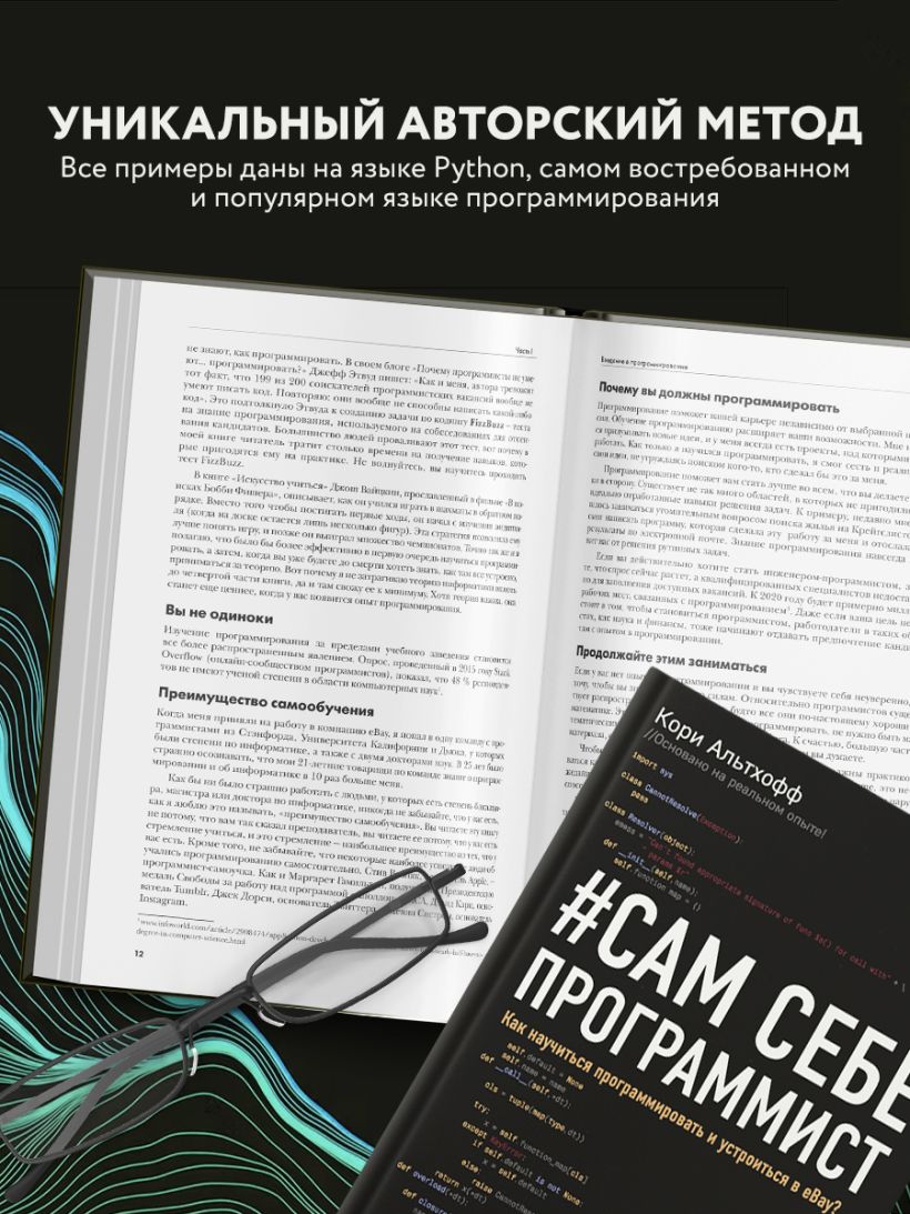 Как за год научиться программировать и устроиться разработчиком в Ebay? Кори Альтхофф, автор книги «Сам себе программист», на собственном опыте знает, что это возможно, и делится знаниями с читателями. Альтхофф создал универсальный самоучитель, не похожий ни на один другой. На примере языка Python автор показывает, как буквально с первого урока можно приступить к созданию собственной небольшой программы, а к концу книги уверенно писать код. Помимо этого, вы узнаете, как успешно проходить собеседования на должность программиста в любой IT-компании и перестать сомневаться в собственных силах. Это прекрасное пособие для тех, кто хочет научиться программировать и планирует заниматься этим профессионально.