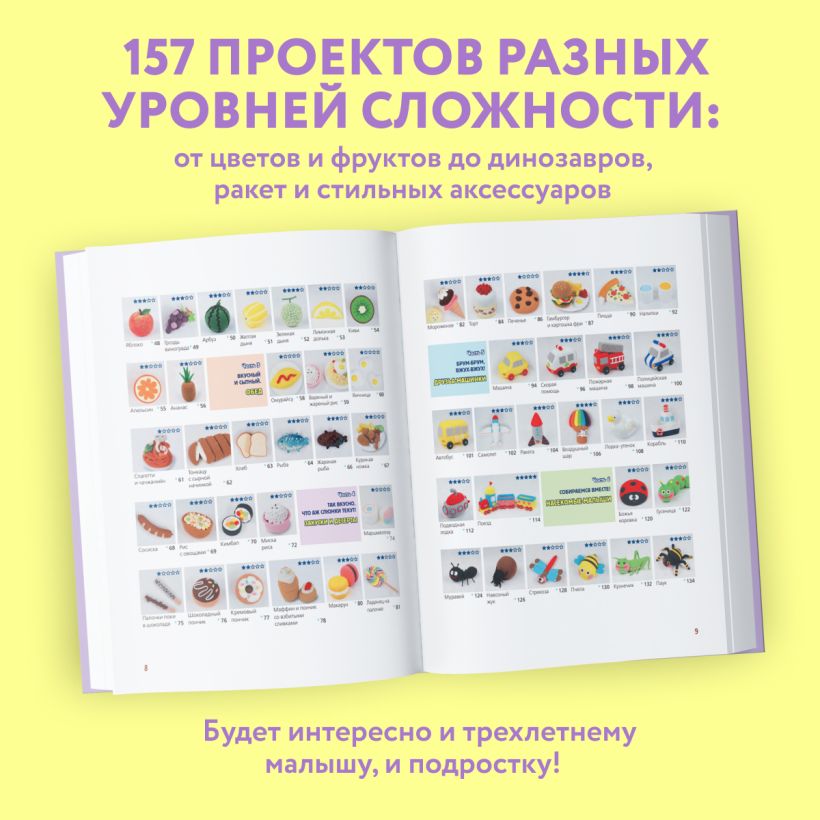 Эта книга научит лепить целых 157 красивых проектов с указанием уровня сложности: