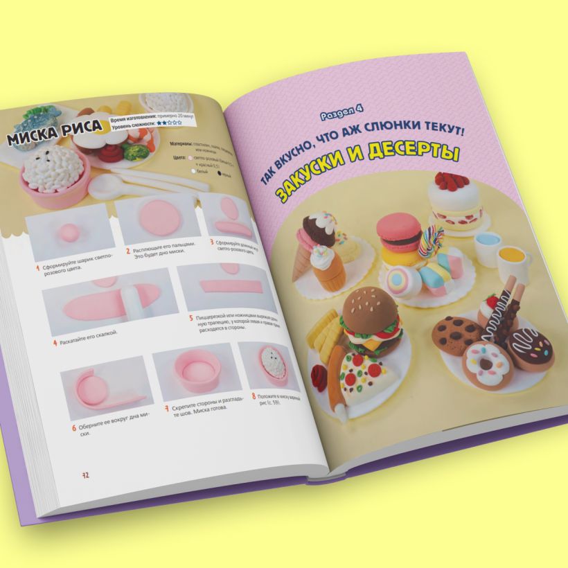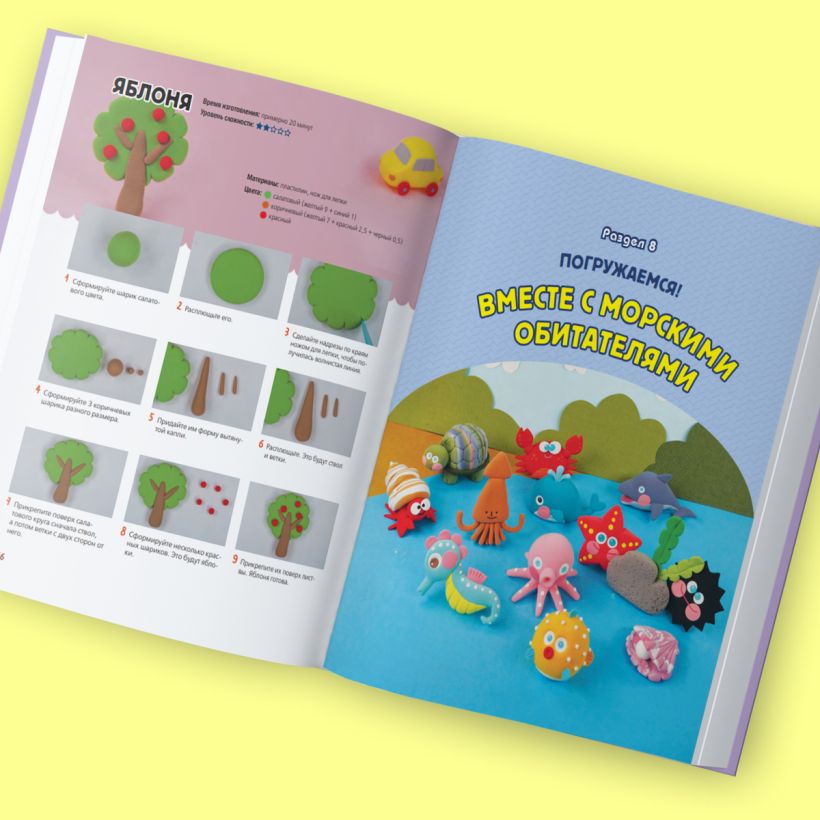Начиная с азов, шаг за шагом малыш будет осваивать создание основных форм — шариков, жгутов, капель… Все основы, способы лепки, искусство смешивания цветов с фотографиями и даже видео! В книге есть как простые работы, которые можно сделать всего за несколько минут, так и сложные, для выполнения которых требуется концентрация и гораздо больше времени. Выбирать работу по силам очень удобно — их фотографии и указание уровня сложности есть в оглавлении, не надо листать всю книгу!
