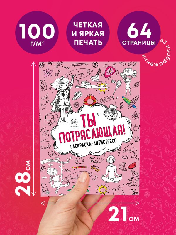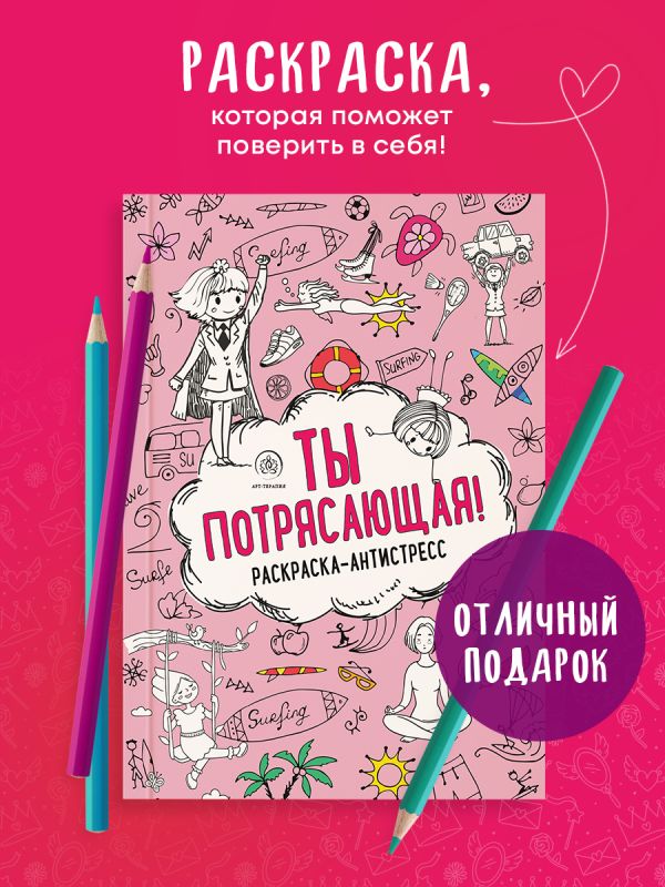 Ты потрясающая! Раскраска-антистресс с мотивирующими фразами для девочек
