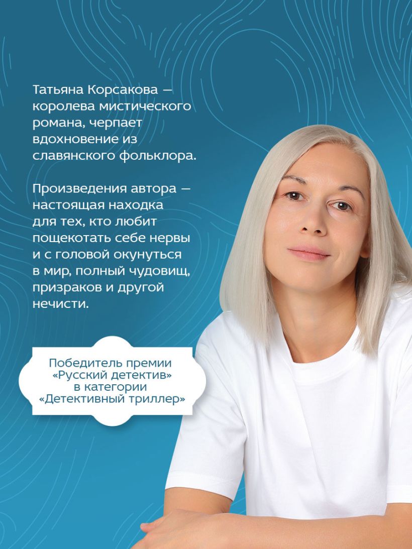 Татьяна Корсакова пишет на границе смешения жанров сентиментального романа, детектива и мистики. Почитатели любовно-авантюрных историй знают ее под псевдонимом Алиса Корсак. В ее романах есть всё: настоящая дружба, первая любовь, мистика, нетривиальный сюжет.