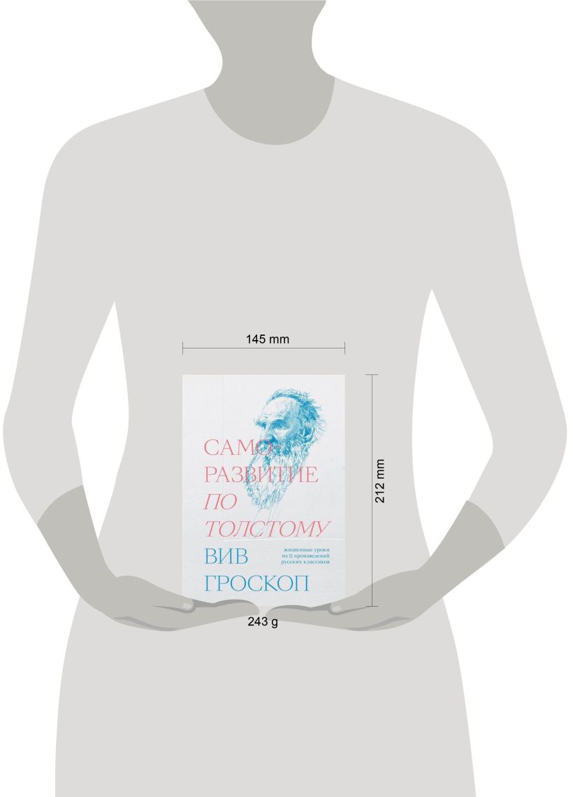 Журналистка The Telegraph и профессиональная стендап-комедиантка Вив Гроскоп в сложный жизненный период нашла в великих русских романах не только утешение, но и душеполезные советы, которые помогли ей выбраться из бедственного положения — и решила описать этот опыт. В «Саморазвитии по Толстому» она на собственном примере и судьбах русских классиков показывает, что даже из самой сложной ситуации можно найти выход с помощью литературы: «Анна Каренина» облегчает кризис идентичности, тургеневская пьеса «Месяц в деревне» помогает пережить несчастную любовь, а «Мастер и Маргарита» — справиться с тяжелейшими обстоятельствами. Лев Толстой, Федор Достоевский, Анна Ахматова, Антон Чехов, Николай Гоголь и другие в книге Гроскоп — не бронзовые памятники, а живые люди, которые тоже страдали и сомневались, их обуревали тысячи страстей, но они сумели сохранить достоинство и остались самими собой.