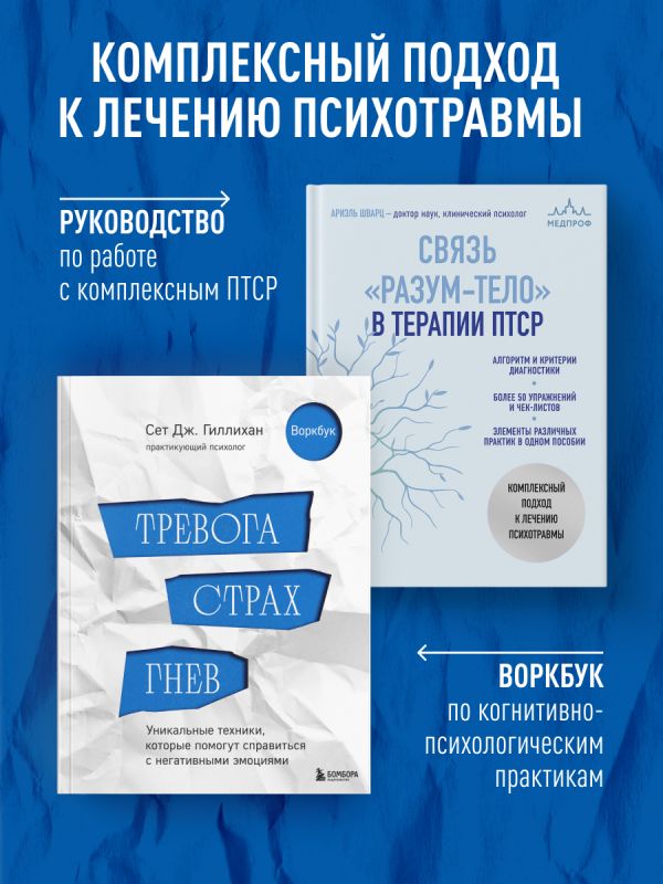 Комплект из 2-х книг: Связь "разум-тело" в терапии ПТСР. Комплексный подход к лечению психотравмы + Тревога, страх, гнев. Уникальные техники, которые помогут справиться с негативными эмоциями