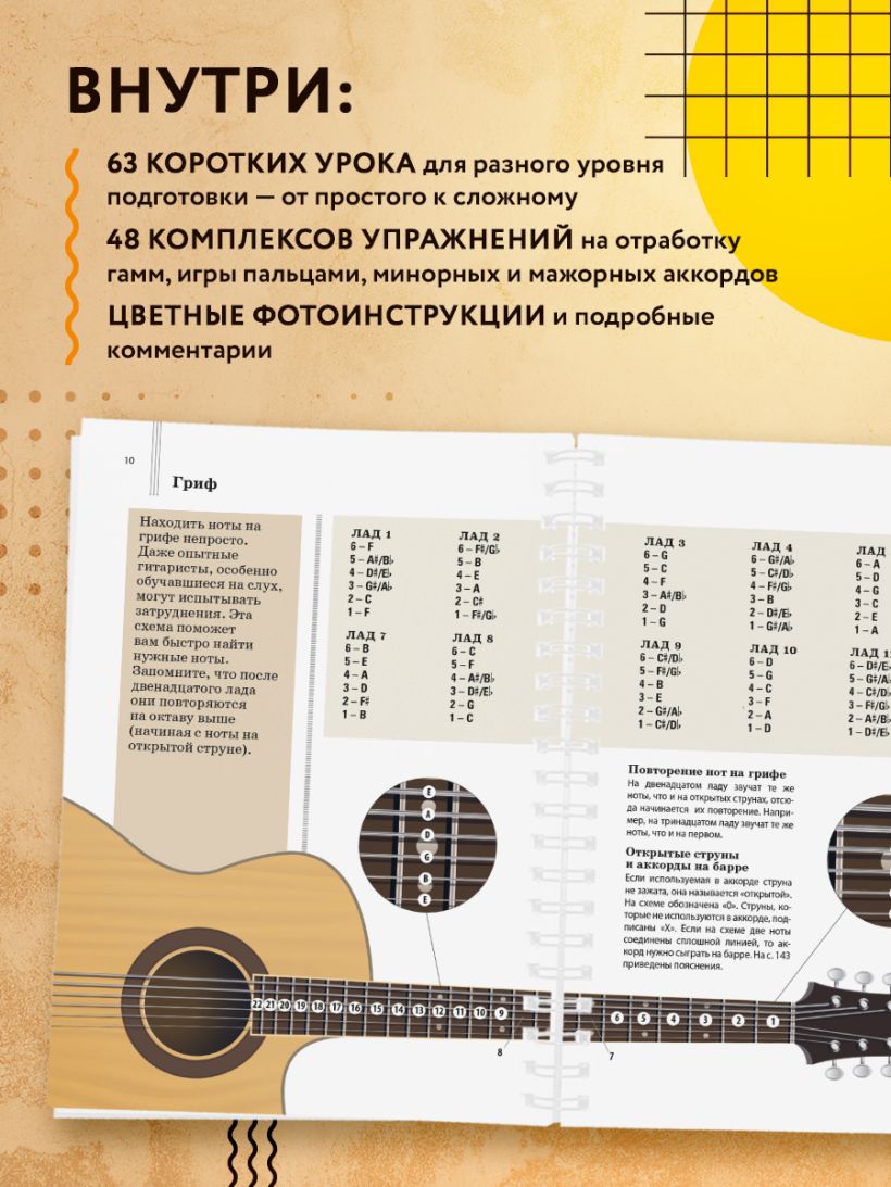 63 пошаговых урока, чтобы научиться профессионально играть на гитаре всего за 10 минут в день!