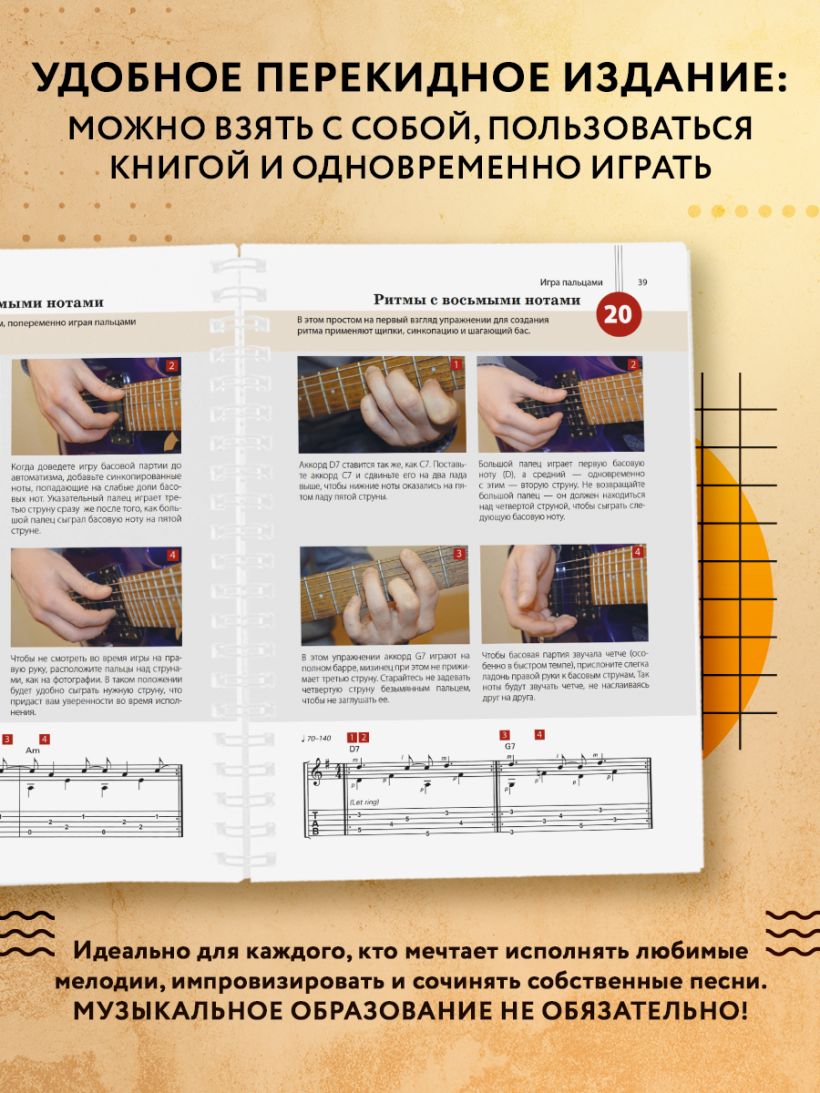 Самоучитель содержит подробные фотографии, письменные пояснения и табулатуры. Комплексы упражнений помогут сосредоточиться на практике и вывести игру на качественно новый уровень. Каждый из них предназначен для развития определенной техники (игра боем, триоли, легато и т.д.) и рассчитан на десять минут.