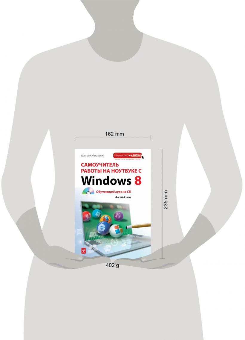 Благодаря нашему самоучителю вы сможете разобраться в тонкостях работы с ноутбуком, а также мобильным компьютером с сенсорным экраном, работающих на базе Windows 8. Диск с обучающим курсом поможет освоить все премудрости и научиться использовать свой компьютер на 100%.