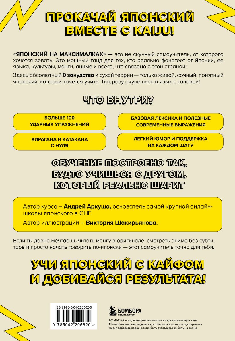 "Японский на максималках" — современный самоучитель для начинающих от основателя крупнейшей онлайн-школы японского языка Kaiju. С ним вы шаг за шагом освоите хирагану и катакану, разберетесь в базовой грамматике, выучите важные слова и фразы и начнете уверенно говорить по-японски. Четкая структура, наглядные объяснения и продуманная система упражнений делают изучение языка понятным, последовательным и увлекательным.