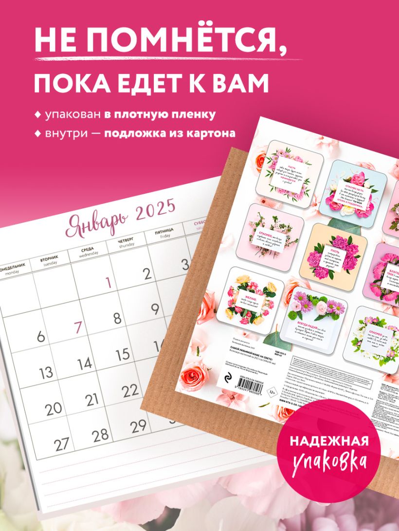 Счастье выбирает меня! Уже давно не секрет, что подсознание творит нашу реальность. Один из самых простых и эффективных способов повлиять на него — аффирмации. Эти позитивные утверждения помогают заменить внутренние негативные установки на позитивные. Они снижают уровень стресса, помогают найти мотивацию и учат замечать прекрасное в себе. Позволь себе перемены к лучшему — начни каждый день с вдохновения. Календарь станет твоим надёжным помощником: на каждой его странице тебя ждёт добрая установка, нежное напоминание о твоей ценности и возможности быть счастливой. Просто отрывая один листок за другим, ты наполняешь год светом, теплом и внутренней опорой. Произносишь ли ты вслух или про себя, эти слова постепенно пробуждают в тебе уверенность и силу. Ты учишься слышать свой внутренний голос — тот самый, что точно знает, что тебе нужно. Как это работает? ✨ Утро с аффирмацией — задаёт тон дню. ✨ Моменты рефлексии — помогают остановиться и услышать себя. ✨ Постепенная трансформация — слова становятся убеждениями, а убеждения — твоей новой реальностью. Преимущества: - Удобный формат (80х140 мм) — поместится на рабочем столе или тумбочке. - Листы с перфорацией — аккуратно отрывай страницу за страницей, создавая ритуал обновления. - Плотная бумага (115 г/м²) — приятная на ощупь, подходит для заметок карандашом или ручкой - Подставка в комплекте — для красивого размещения на столе. Каждый день — это новый шанс быть счастливой. Ведь счастье уже выбрало тебя!