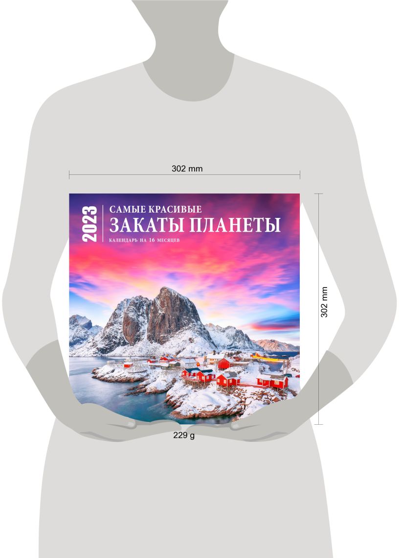 В календаре подобраны красочные фотографии закатов с разных точек земного шара: вы сможете полюбоваться нежными красками неба Таиланда и алтайских просторов, окунуться в атмосферу тепла испанской Гранады, побывать в Швейцарии, Индии, Австралии, познакомиться с обитателем национального парка в Канаде и даже пройтись по дороге Гигантов в Ирландии. Каждый новый месяц встретит вас изображением неповторимого заката в самых красивых местах нашей планеты. Удивительные города, живописные пейзажи и достопримечательности — все это в новом календаре «Самые красивые закаты планеты» на 2023 год.