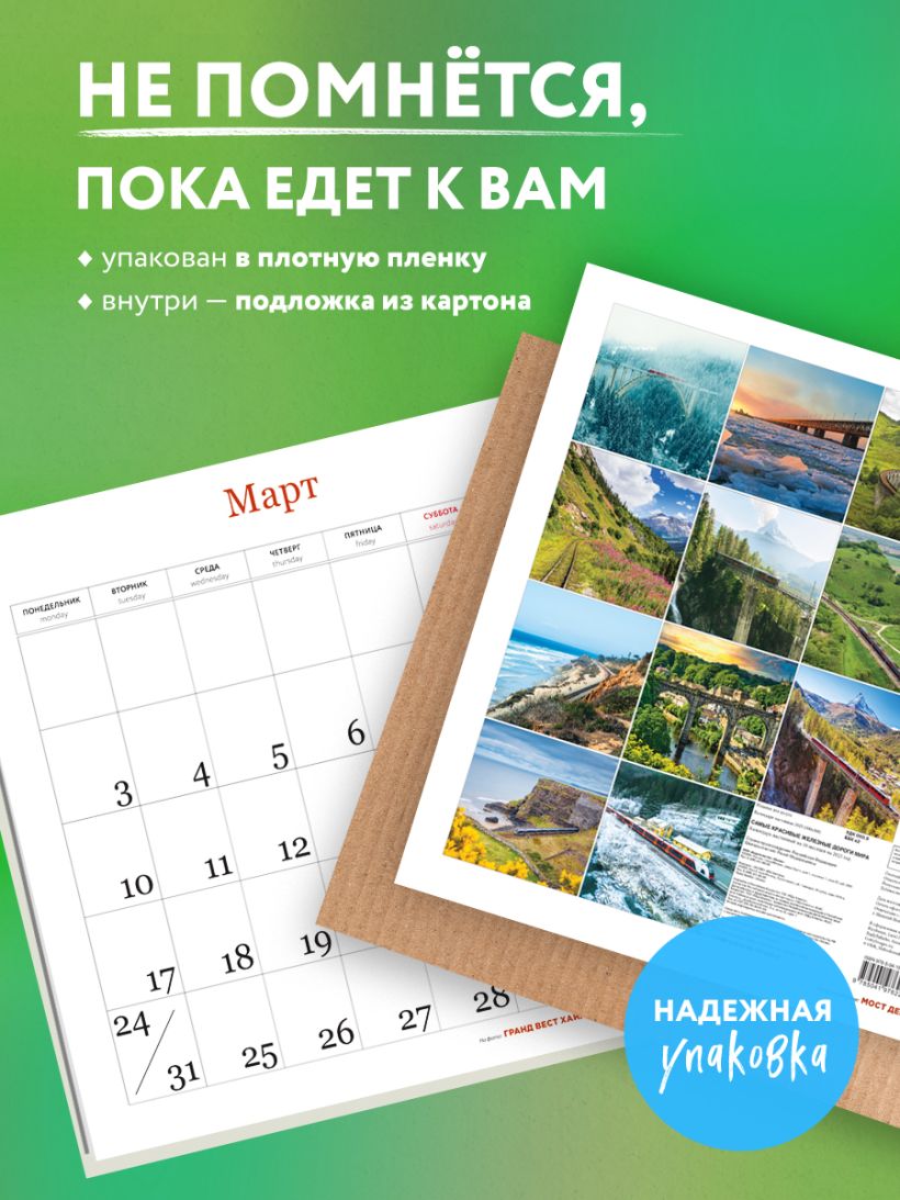 В данном календаре представлены самые красивые железнодорожные маршруты, проложенные через леса, горы, невероятные мосты, прямо в сердце живописных мест!
